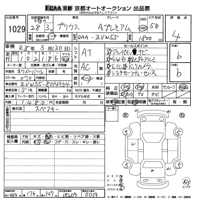TOYOTA PRIUS A PREMIUM 4WD - лот 1029
