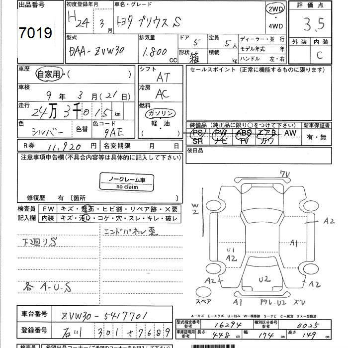 TOYOTA PRIUS S - лот 7019