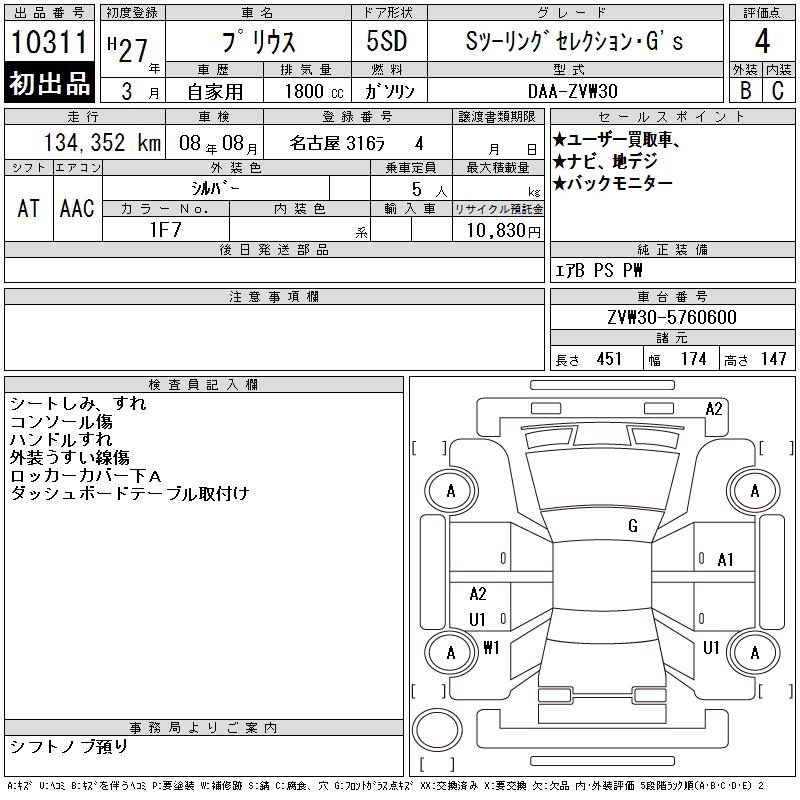 TOYOTA PRIUS S TOURING SELECTION *G'S - лот 10311