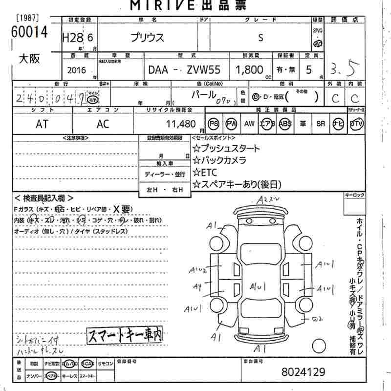 TOYOTA PRIUS S 4WD - лот 60014