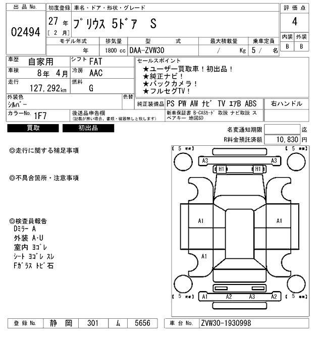 TOYOTA PRIUS S - лот 2494