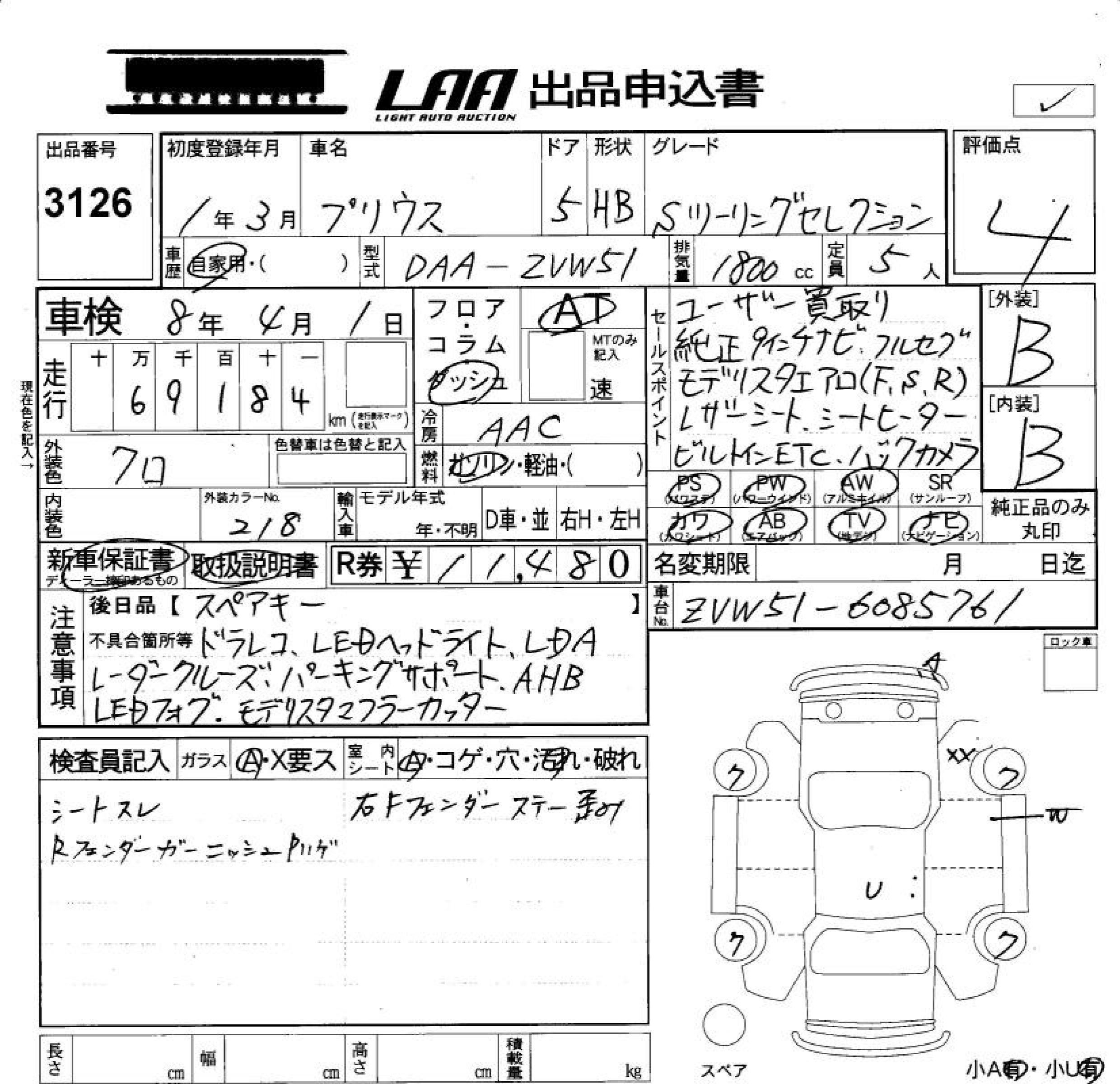 TOYOTA PRIUS S TOURING SELECTION - лот 3126