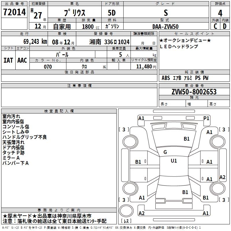 TOYOTA PRIUS S - лот 72014
