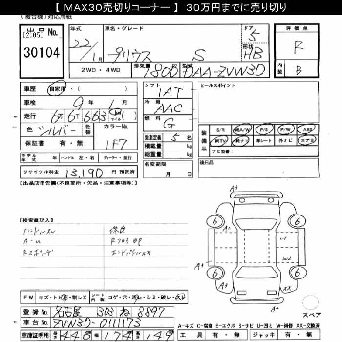 TOYOTA PRIUS S - лот 30104
