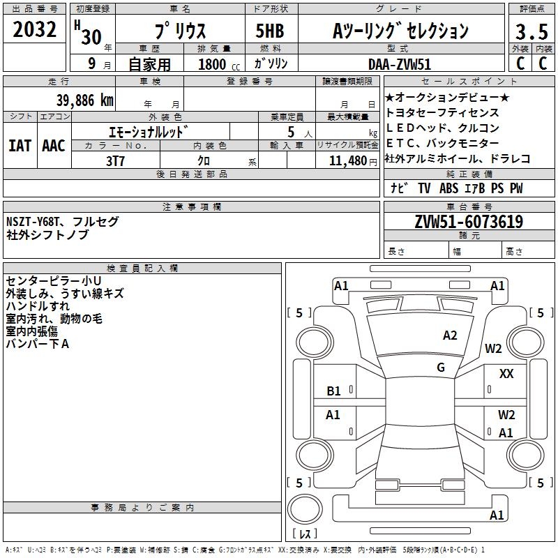 TOYOTA PRIUS A TOURING SELECTION - лот 2032