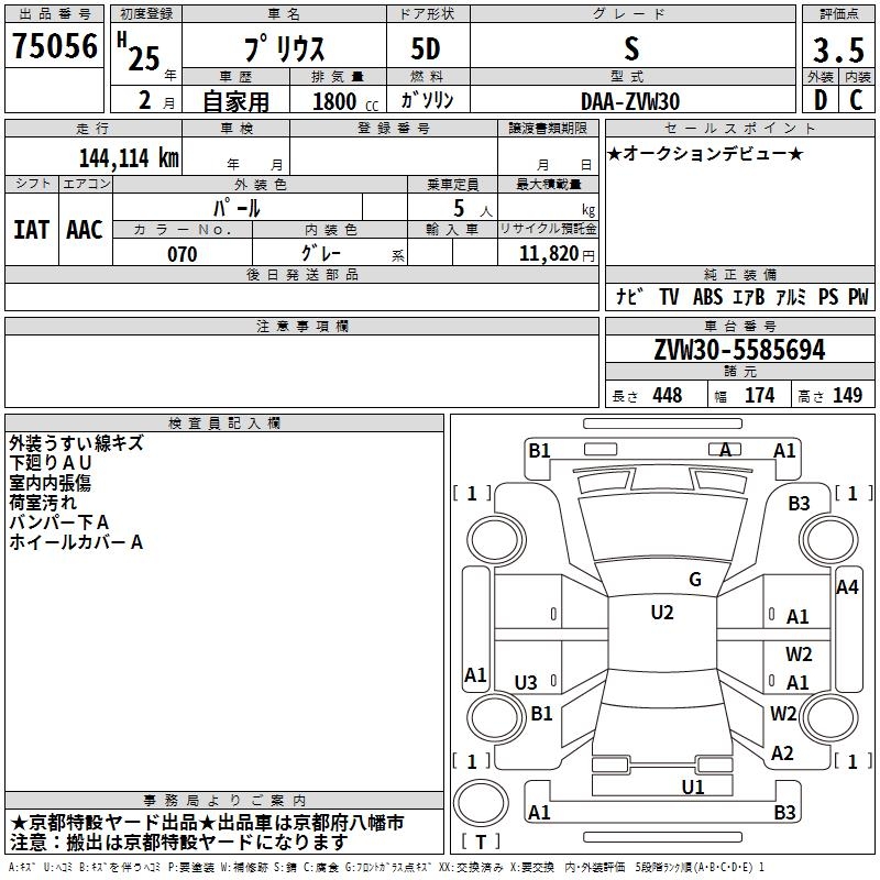TOYOTA PRIUS S - лот 75056