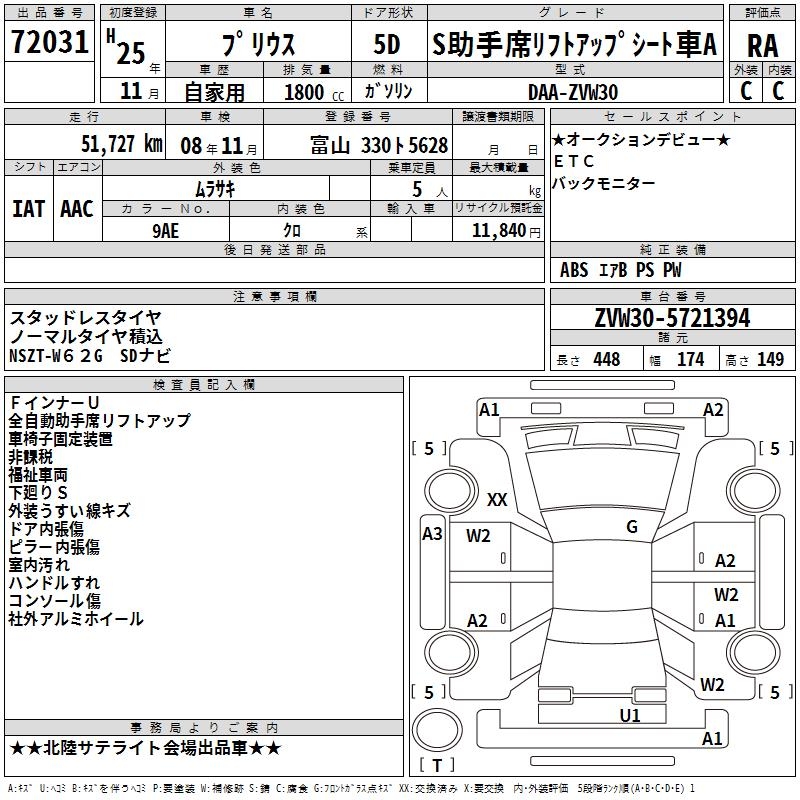 TOYOTA PRIUS SJOSHU SEAT LIFT UP SEAT CAR - лот 72031