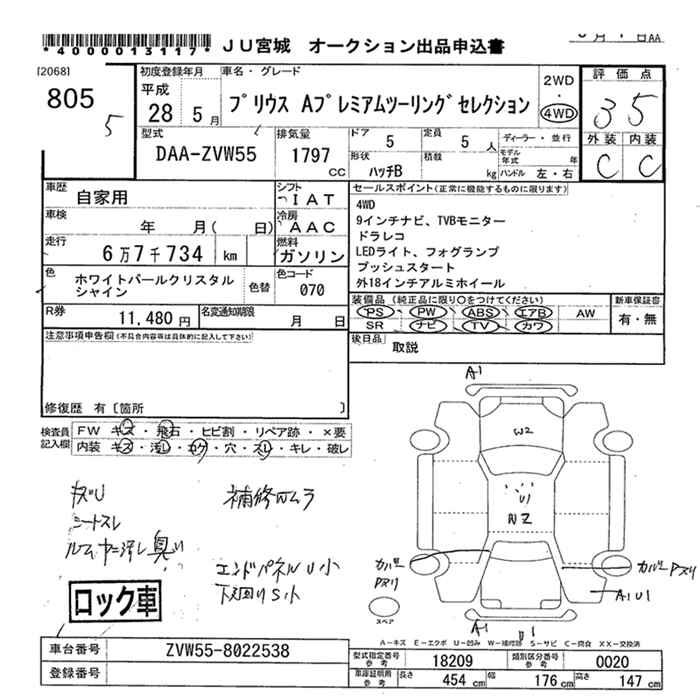 TOYOTA PRIUS 4WD A PREMIUM TOURING SELECTION - лот 805