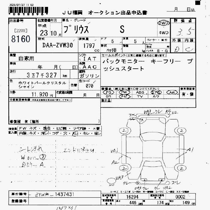 TOYOTA PRIUS S - лот 8160