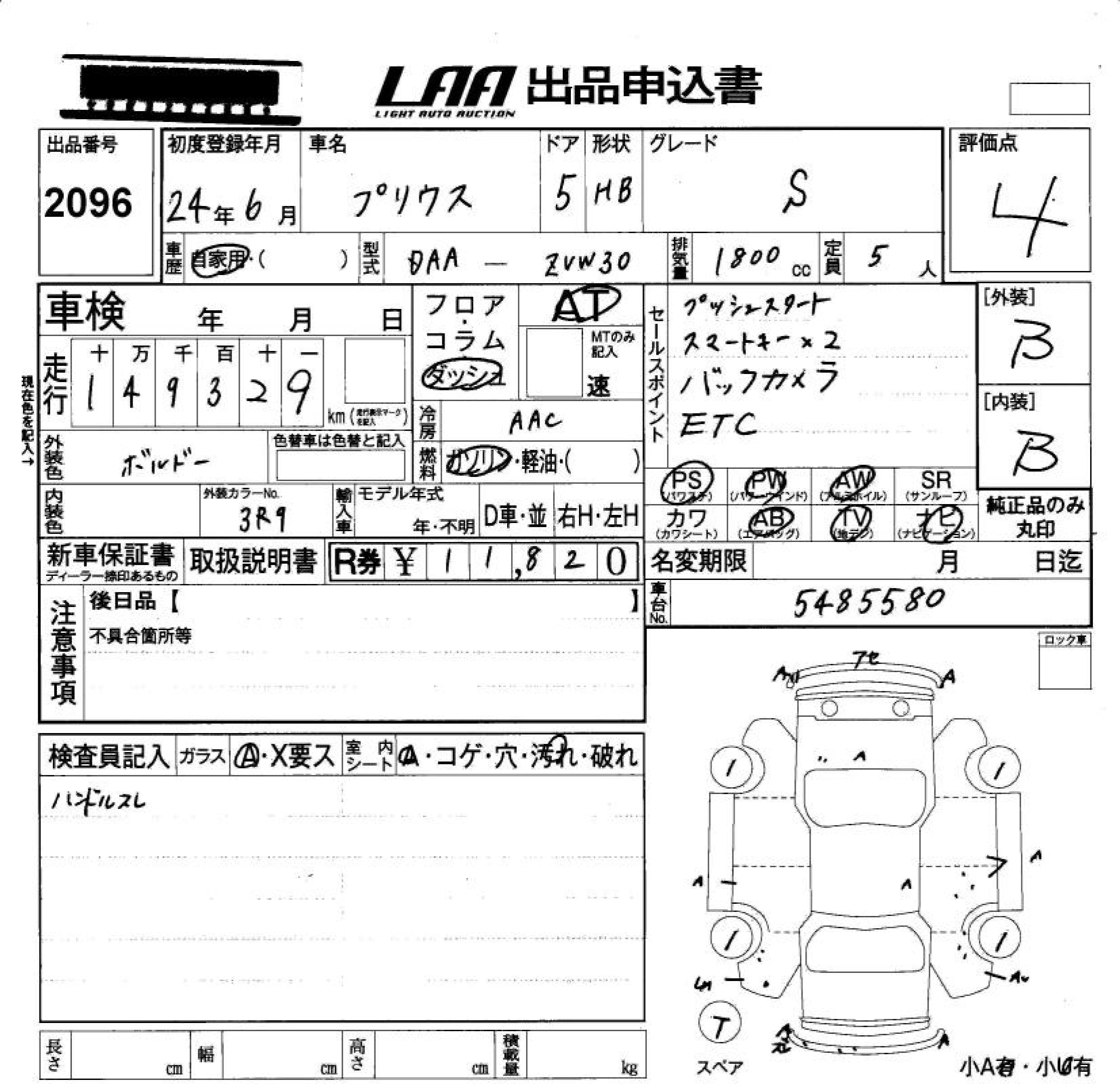TOYOTA PRIUS S - лот 2096