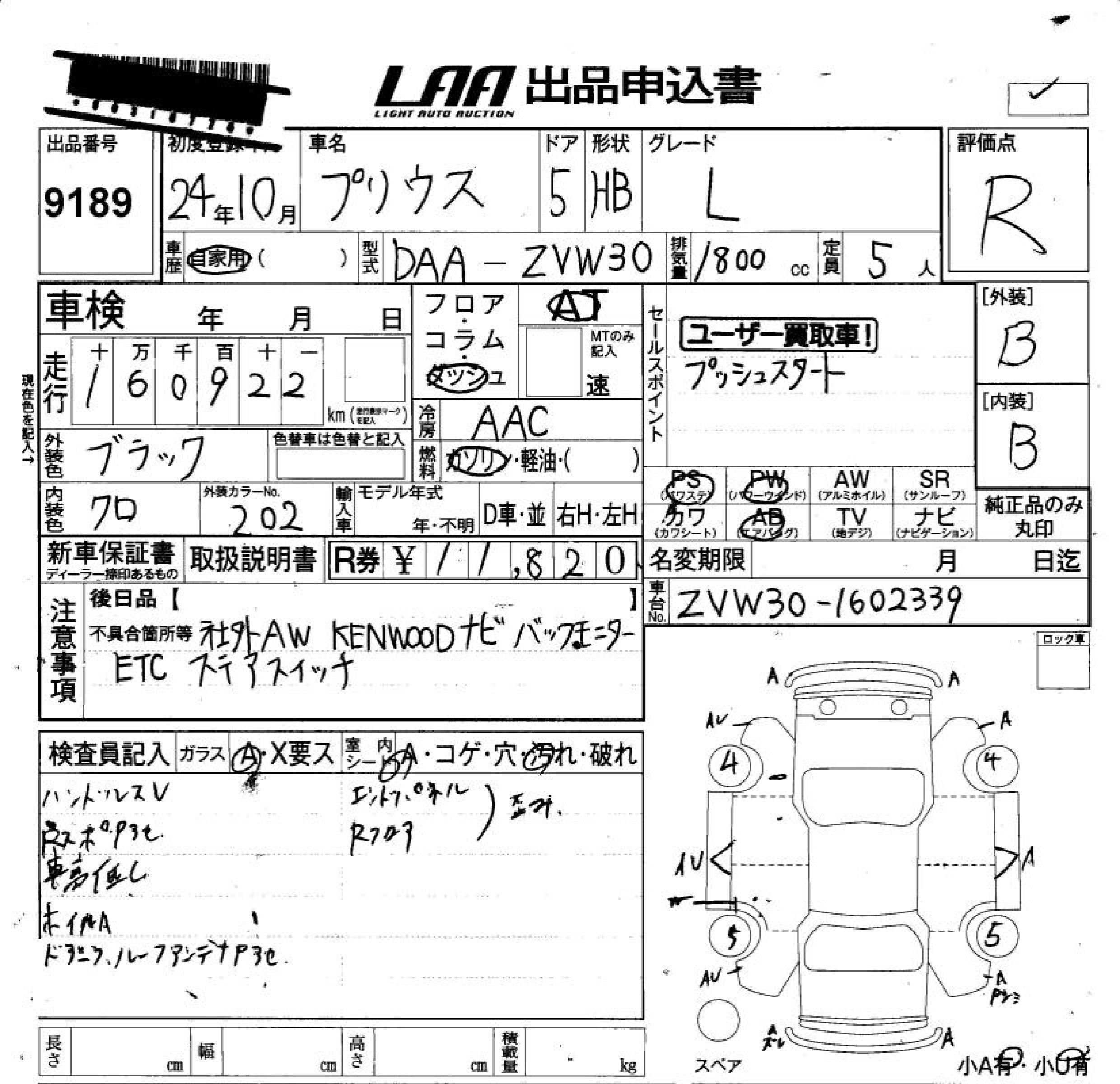 TOYOTA PRIUS L - лот 9189