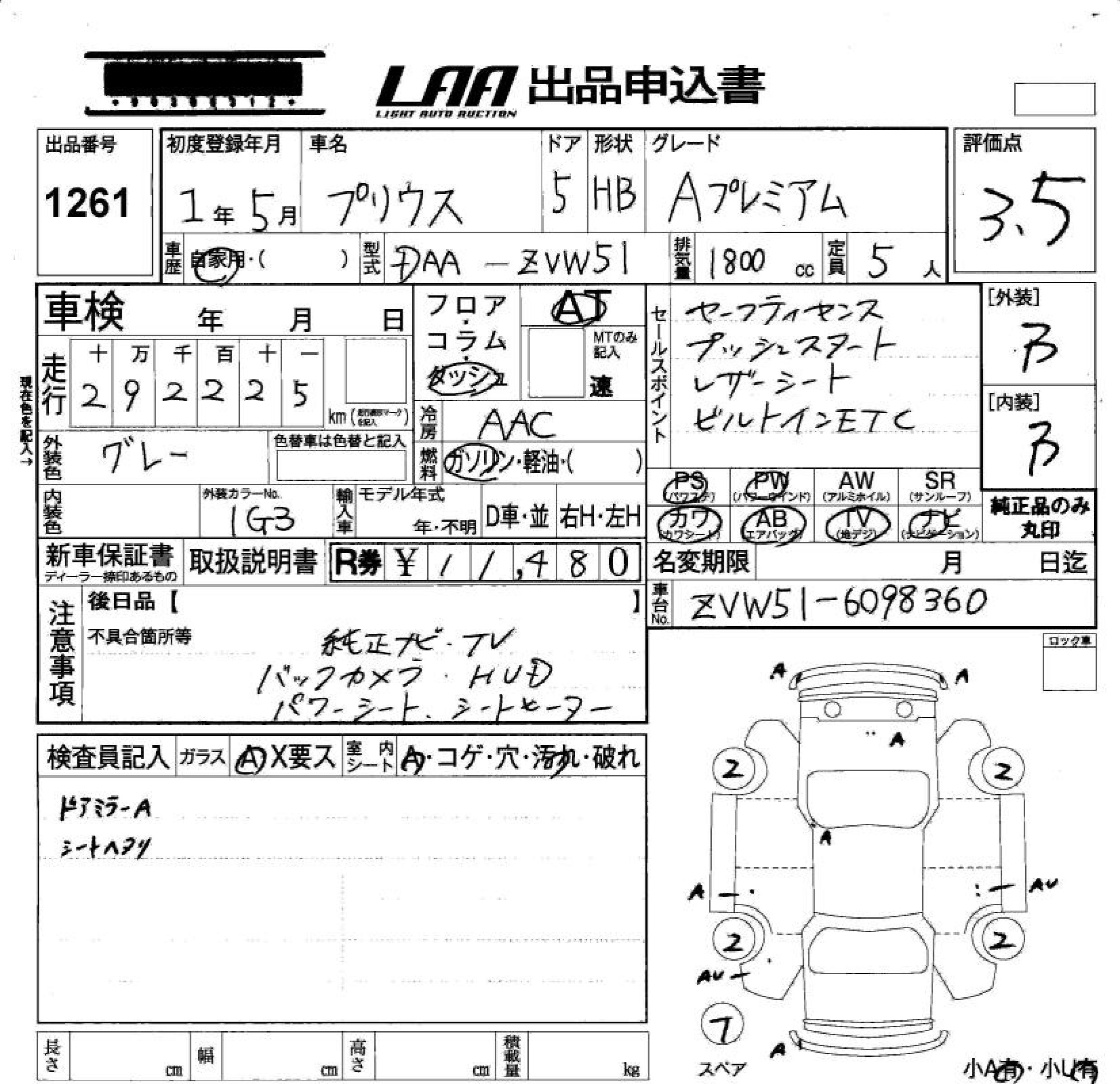 TOYOTA PRIUS A PREMIUM - лот 1261