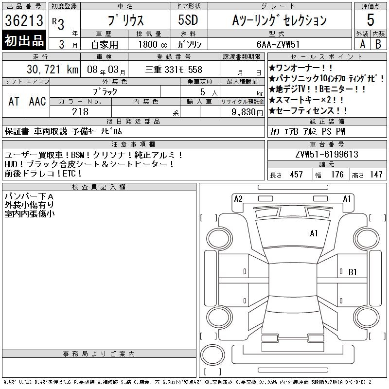 TOYOTA PRIUS A TOURING SELECTION - лот 36213