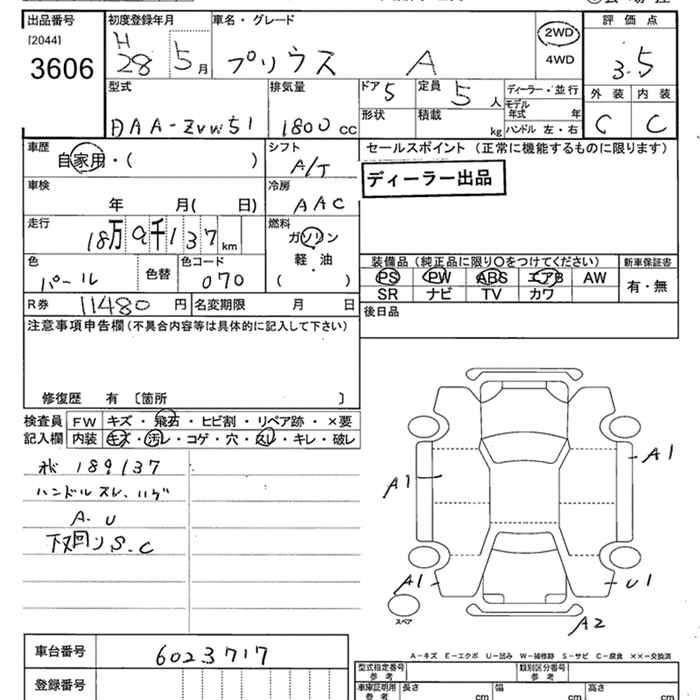 TOYOTA PRIUS A - лот 3606