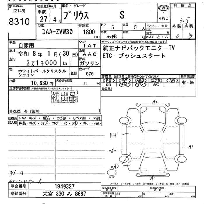 TOYOTA PRIUS S - лот 8310