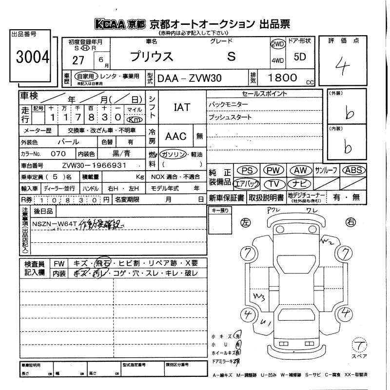 TOYOTA PRIUS S - лот 3004