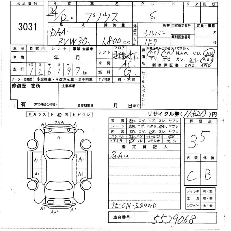 TOYOTA PRIUS S - лот 3031
