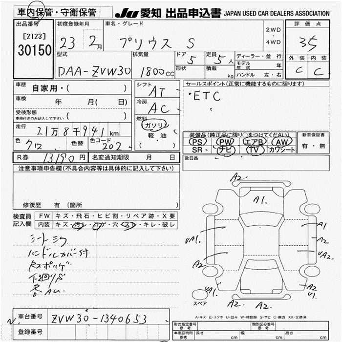 TOYOTA PRIUS S - лот 30150