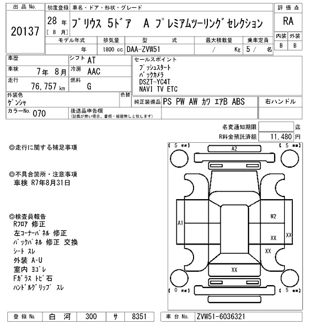 TOYOTA PRIUS A PREMIUM TOURING SELECTION - лот 20137