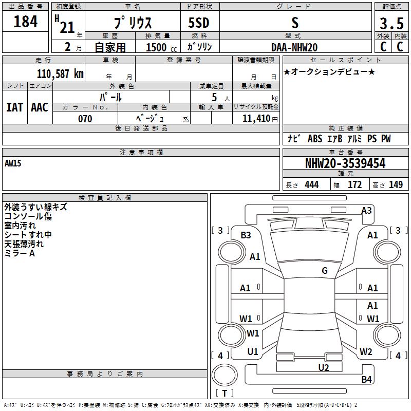 TOYOTA PRIUS S - лот 184