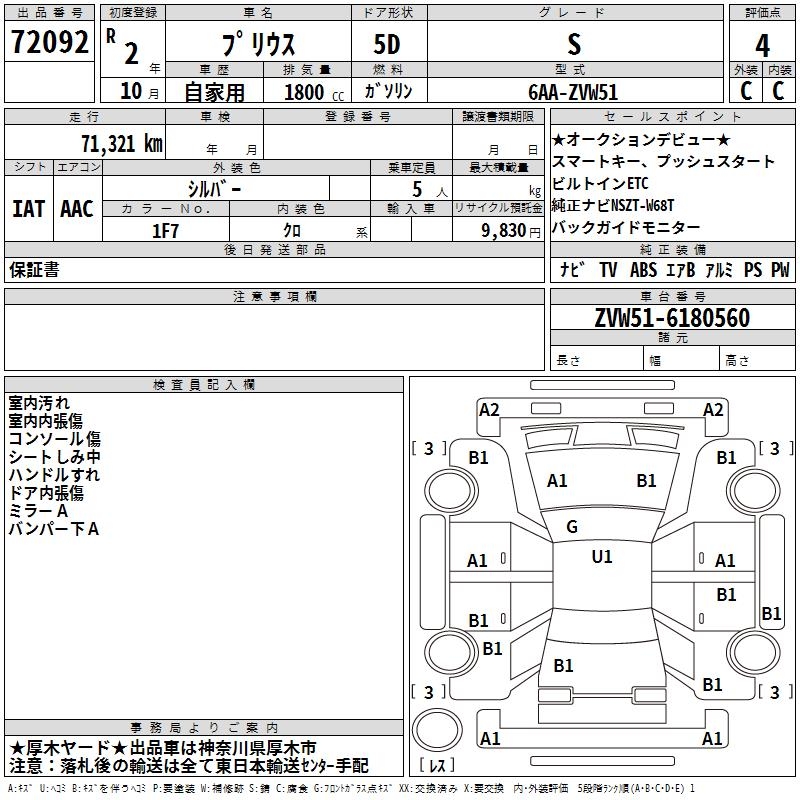 TOYOTA PRIUS S - лот 72092