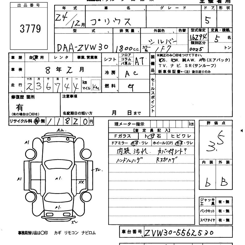 TOYOTA PRIUS - лот 3779