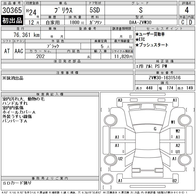 TOYOTA PRIUS S - лот 30365