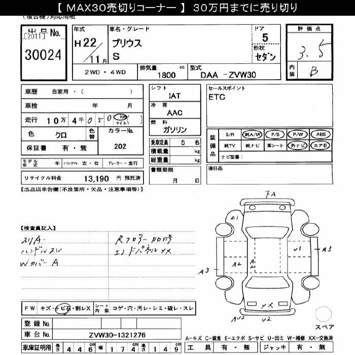 TOYOTA PRIUS S - лот 30024