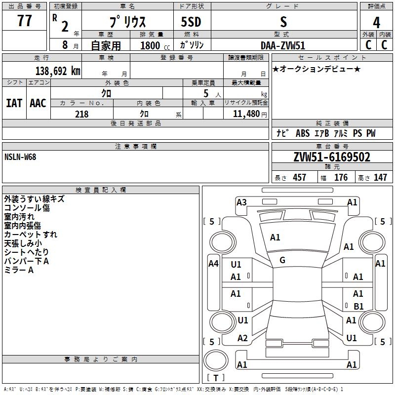 TOYOTA PRIUS S - лот 77