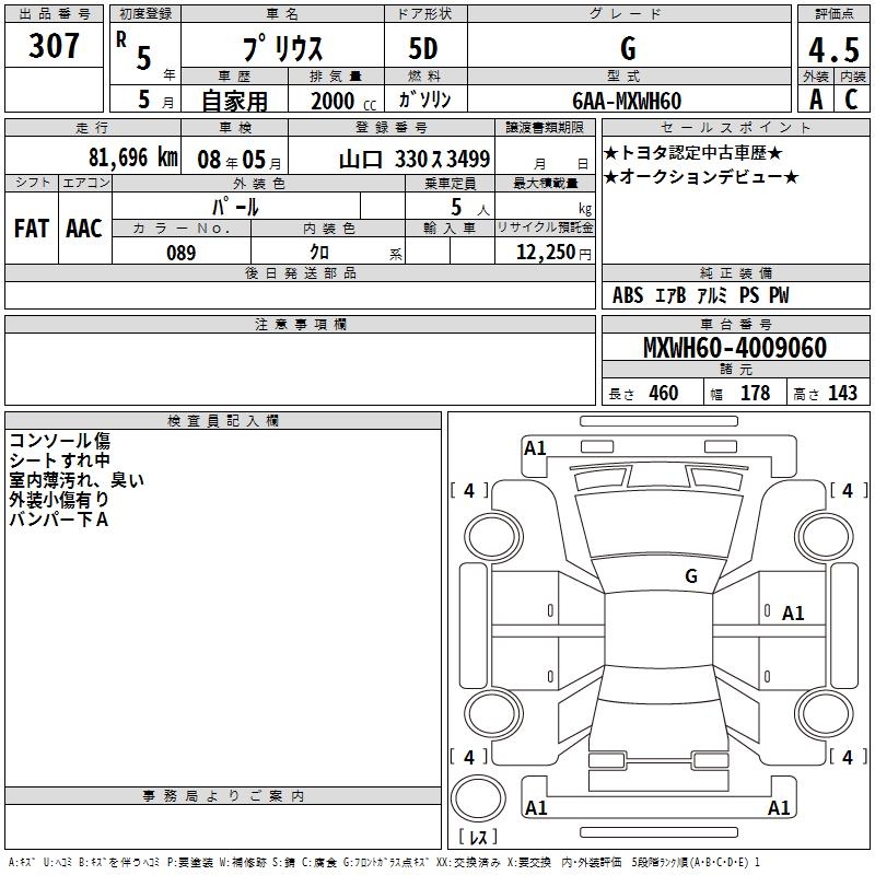 TOYOTA PRIUS G - лот 307
