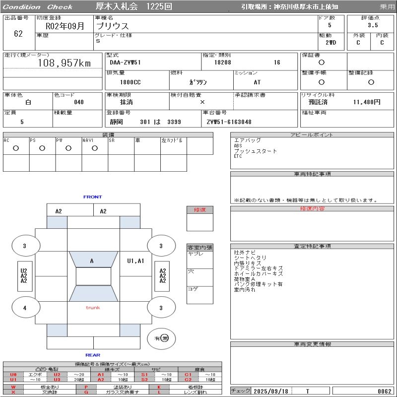 TOYOTA PRIUS S - лот 62