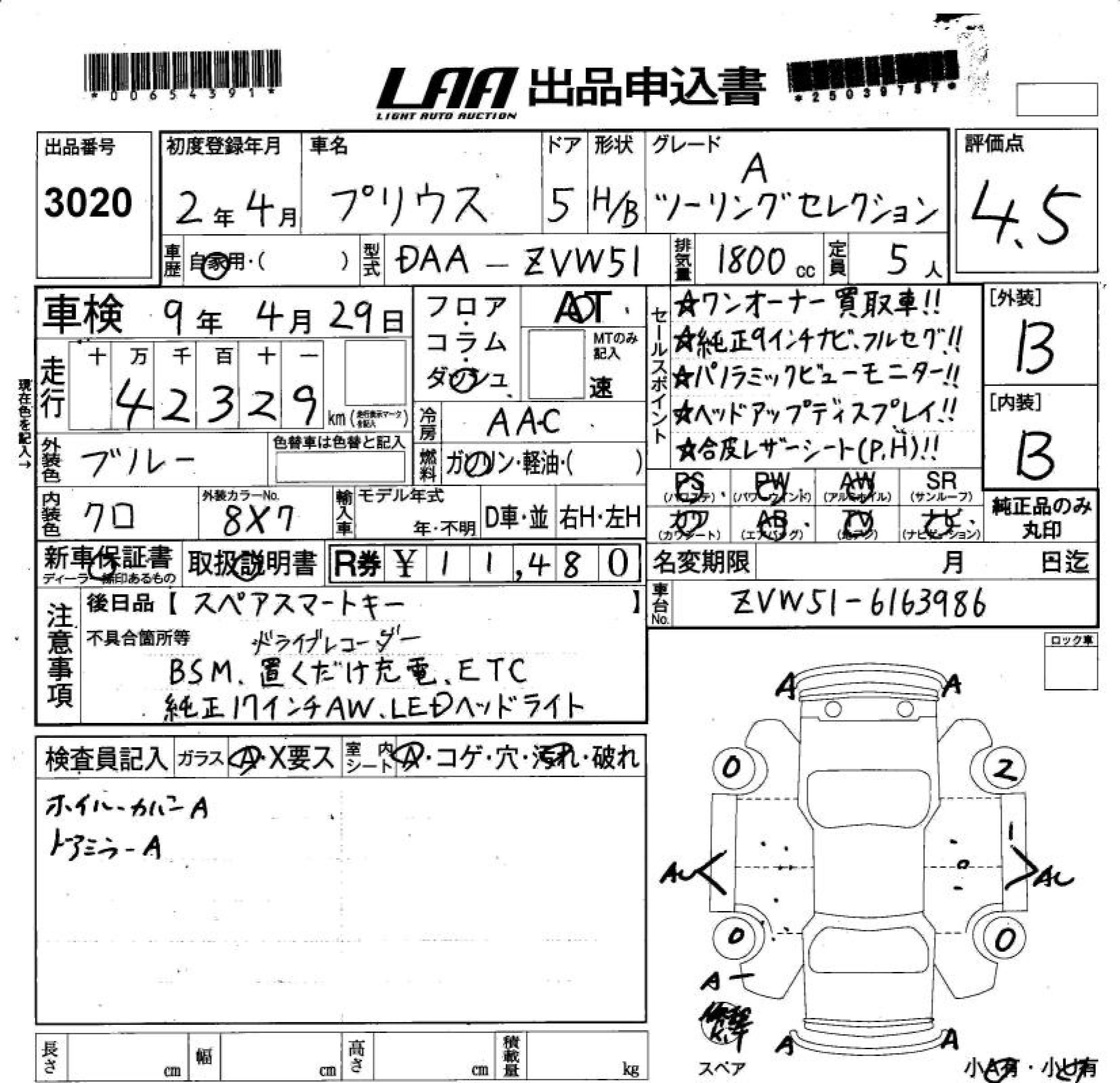 TOYOTA PRIUS A TOURING SELECTION - лот 3020