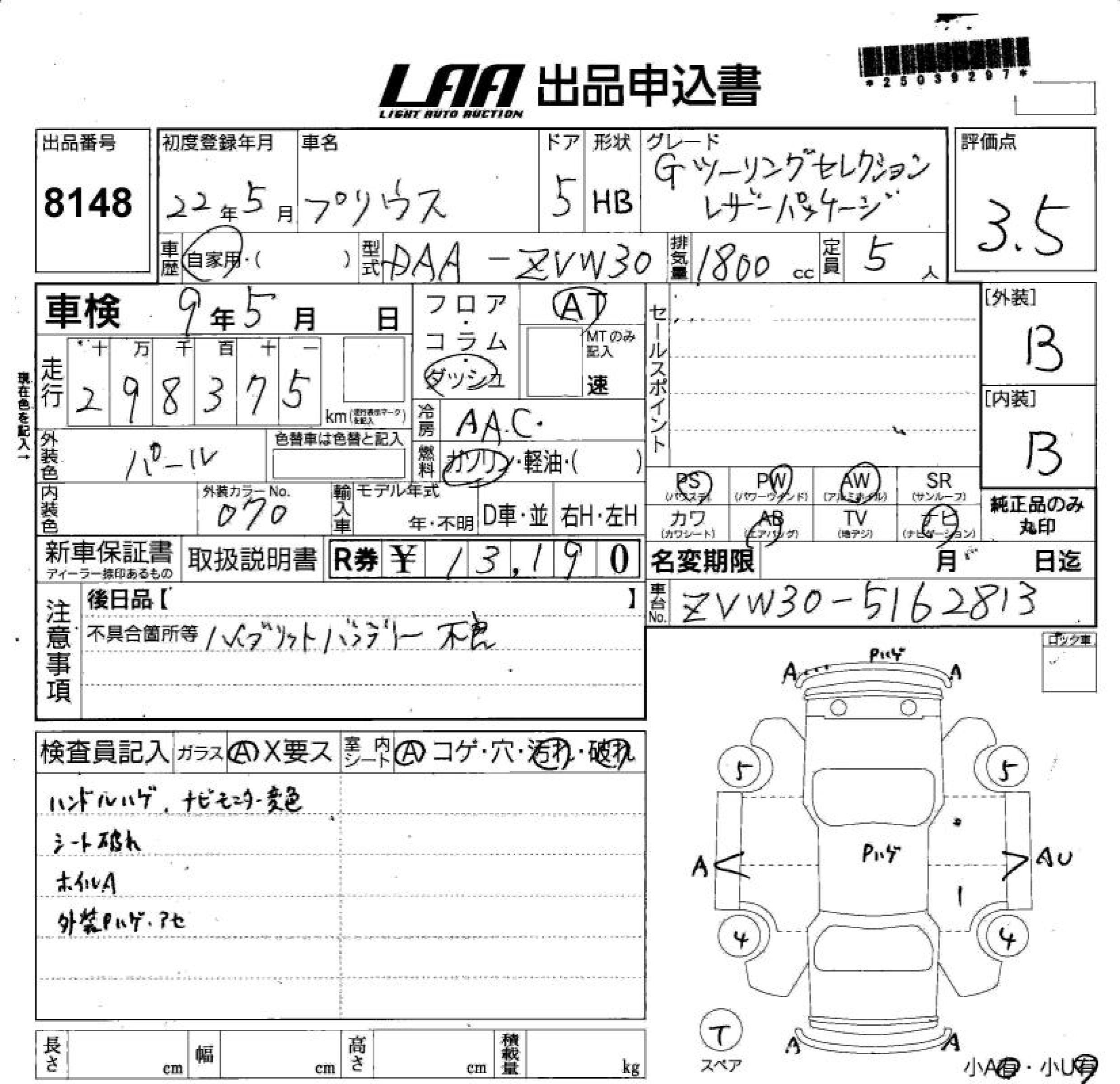 TOYOTA PRIUS G TOURING SELECTION * LEATHER - лот 8148