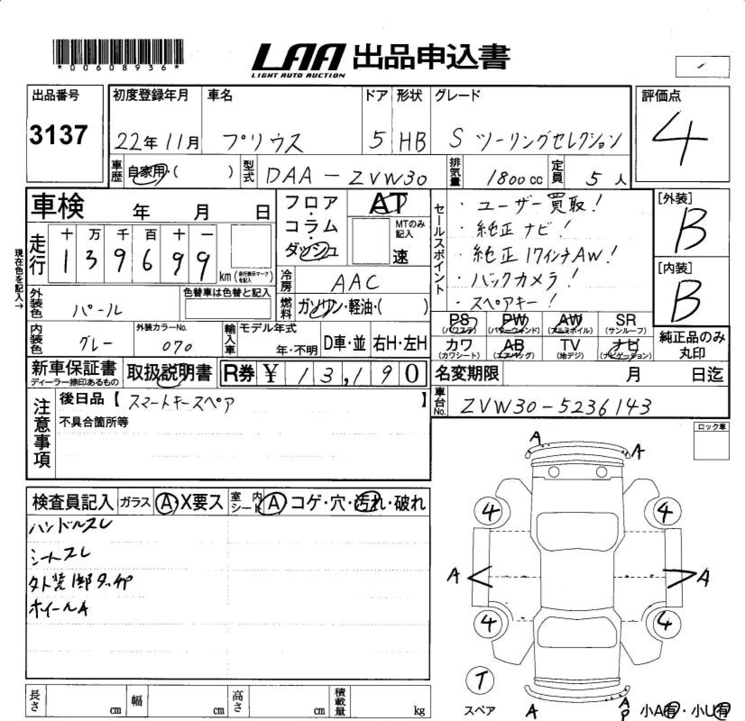 TOYOTA PRIUS S TOURING SELECTION - лот 3137