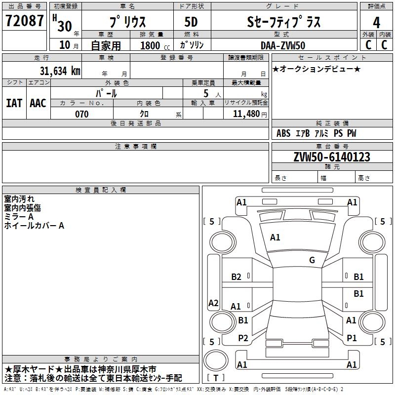 TOYOTA PRIUS S SAFETY PLUS - лот 72087
