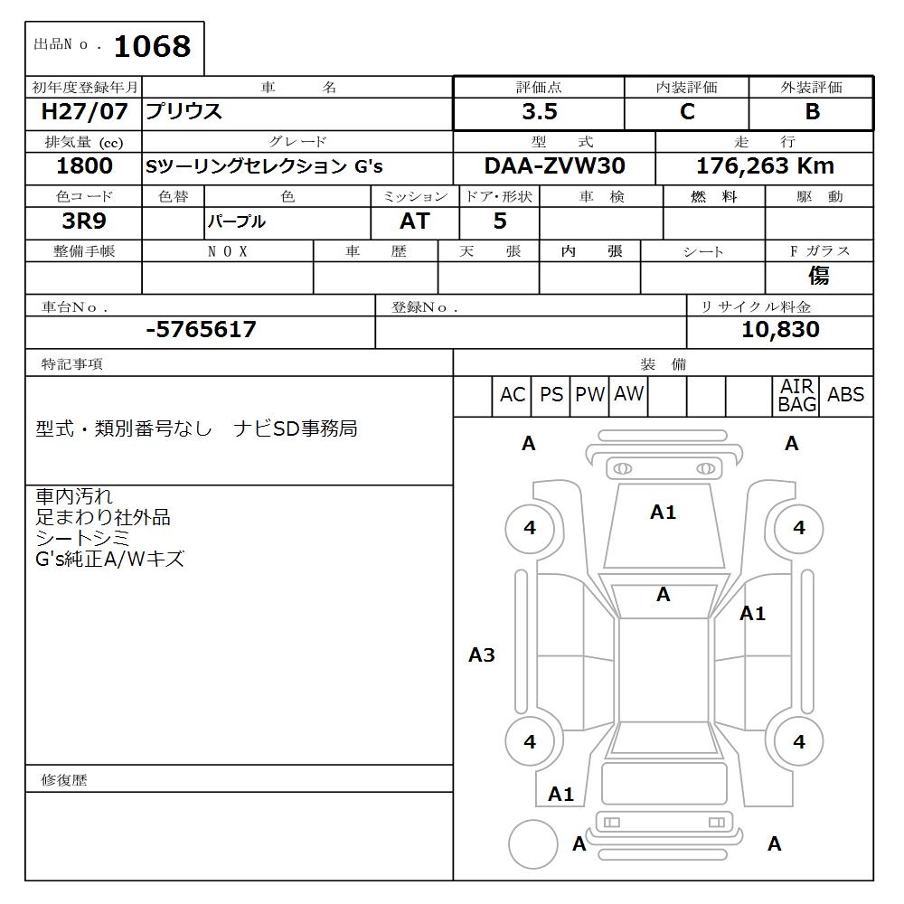TOYOTA PRIUS S TOURING SELECTION G'S - лот 1068