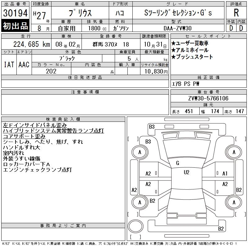 TOYOTA PRIUS S TOURING SELECTION *G'S - лот 30194