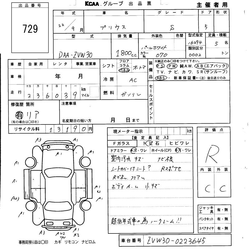 TOYOTA PRIUS S - лот 729