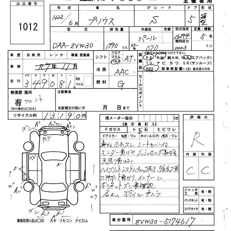 TOYOTA PRIUS S - лот 1012