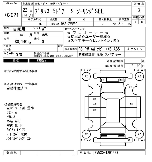 TOYOTA PRIUS S TOURING SEL - лот 2021