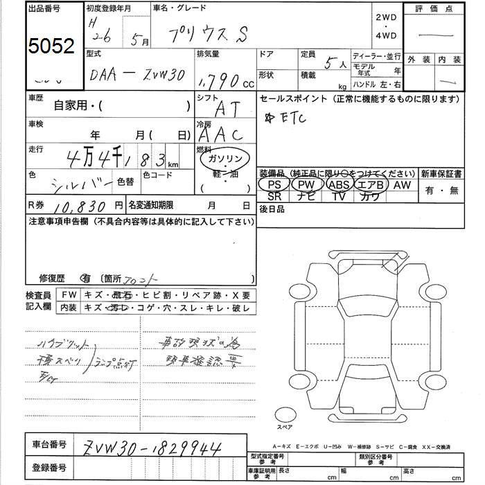 TOYOTA PRIUS S - лот 5052