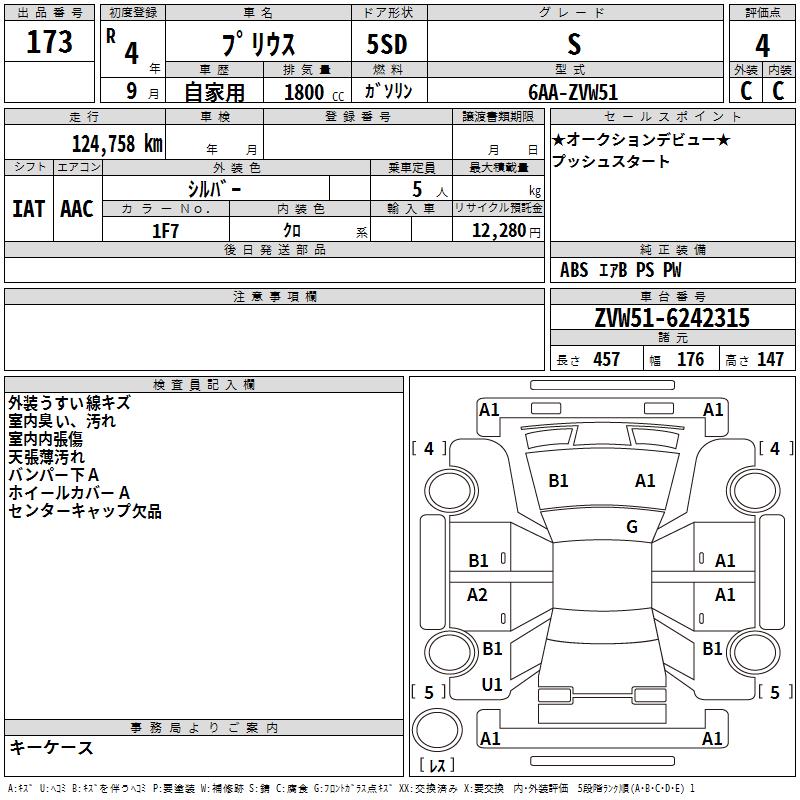 TOYOTA PRIUS S - лот 173