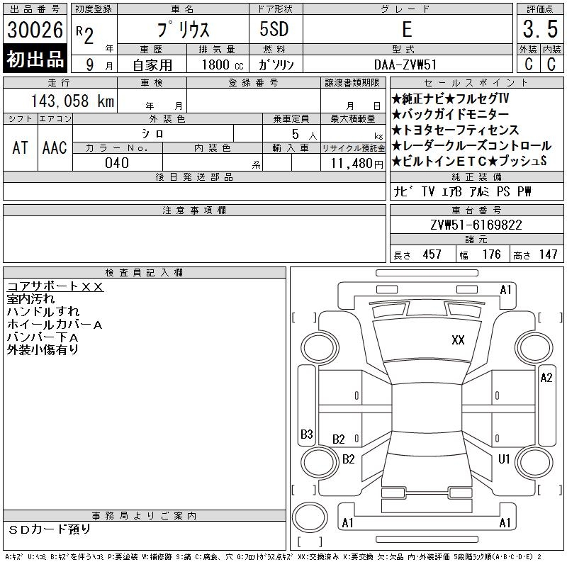 TOYOTA PRIUS E - лот 30026