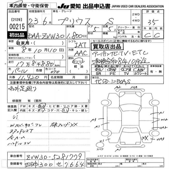 TOYOTA PRIUS S - лот 215