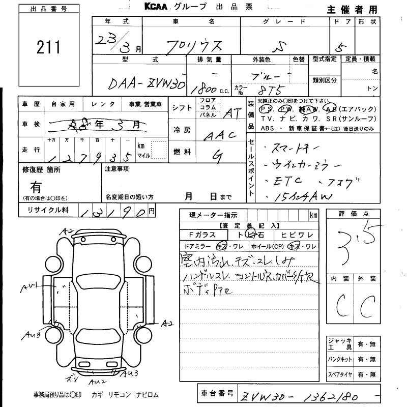 TOYOTA PRIUS S - лот 211
