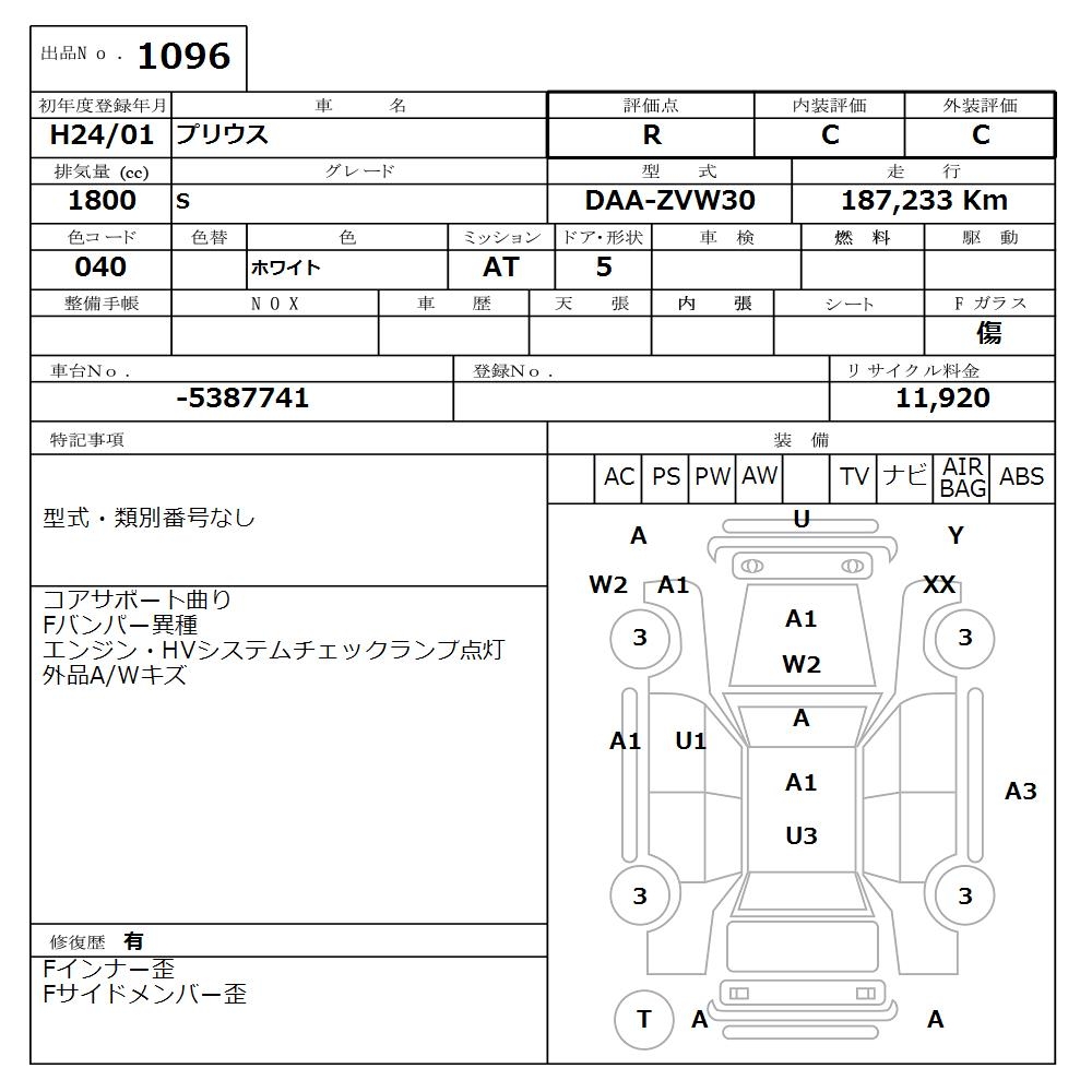TOYOTA PRIUS S - лот 1096