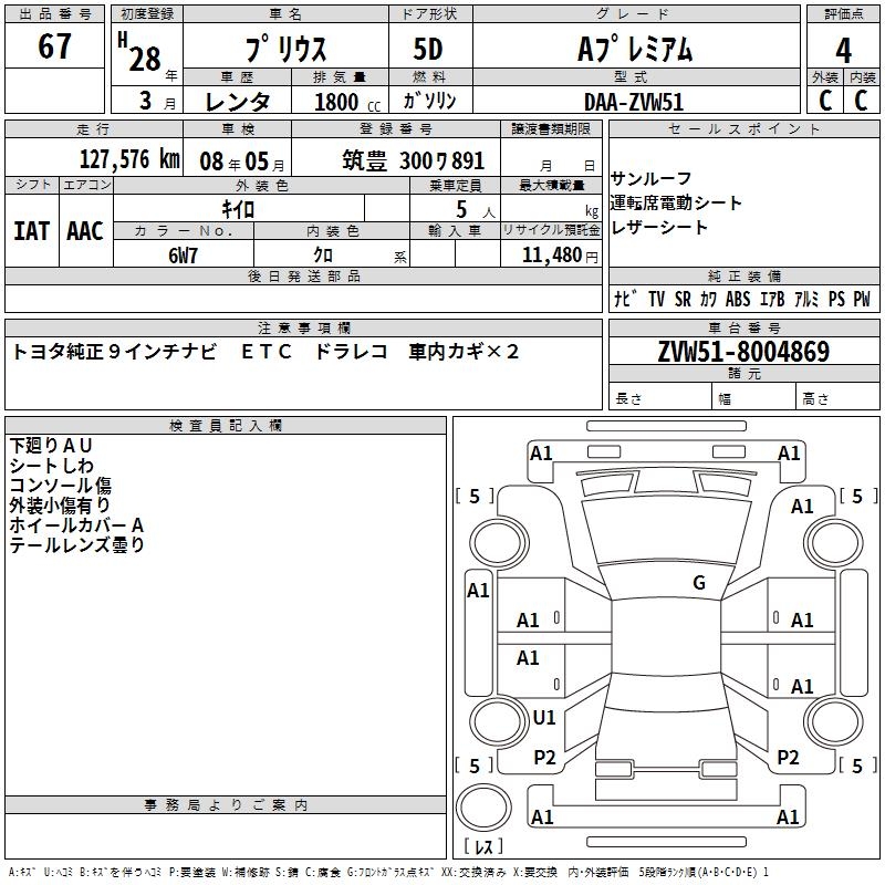 TOYOTA PRIUS A PREMIUM - лот 67