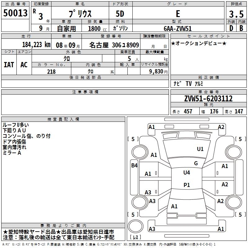 TOYOTA PRIUS E - лот 50013