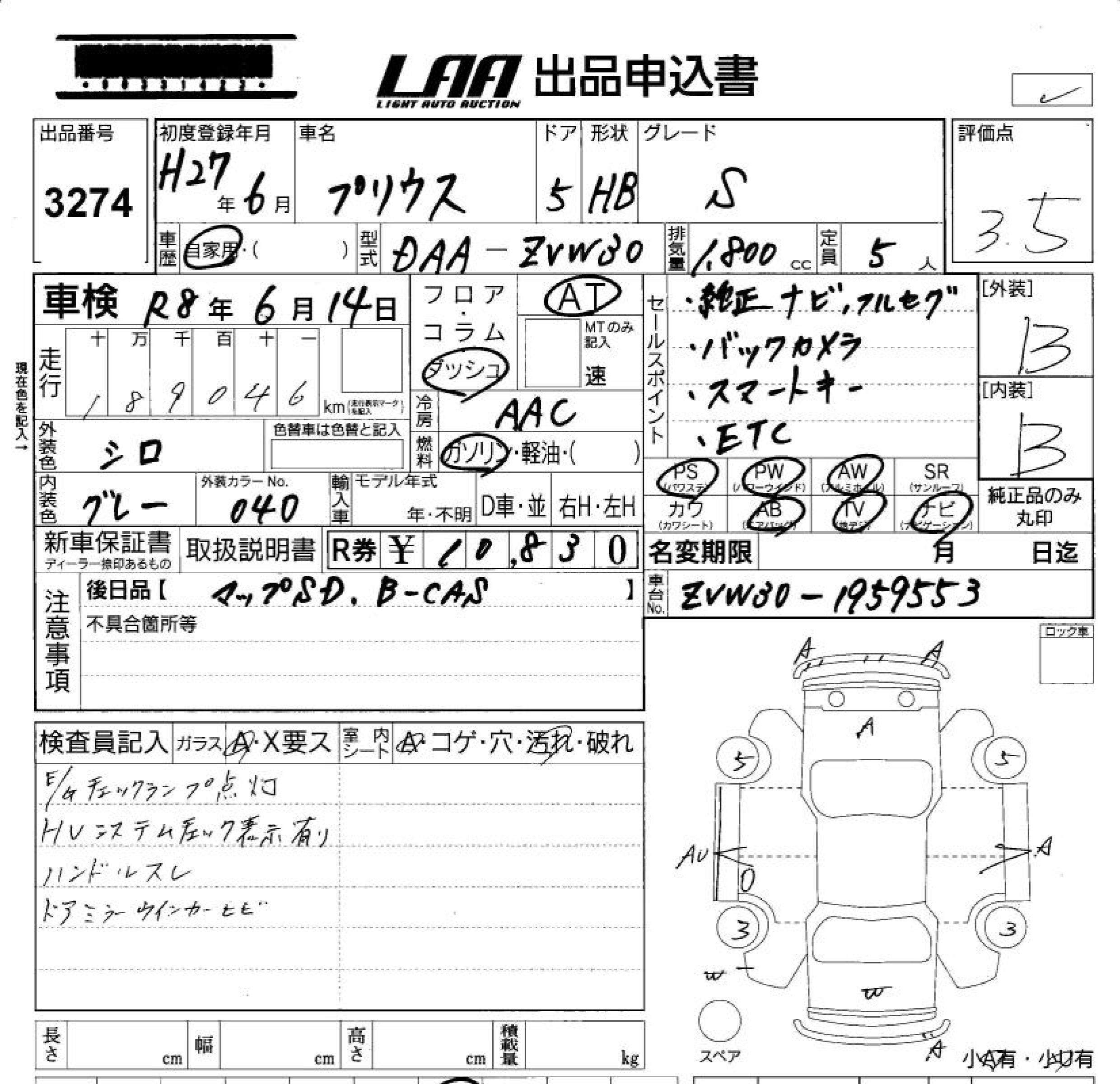 TOYOTA PRIUS S - лот 3274