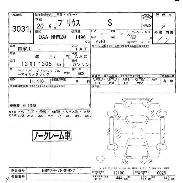 TOYOTA PRIUS S - лот 3031
